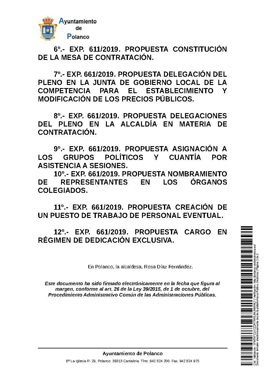 8º.- Exp. 661/2019. Propuesta delegaciones del Pleno en la Alcaldía en materia de contratación.