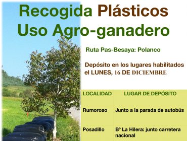 Se procederá a realizar la RECOGIDA DE LOS PLÁSTICOS DE USOS AGRO-GANADEROS en los núcleos del Ayuntamiento por parte de la Mancomunidad de Municipios Sostenibles de Cantabria mediante la empresa Fomento de Construcciones y Contratas para su transporte y tratamiento en la Planta de Tratamiento de Residuos de Meruelo.   DÍA DE DEPÓSITO: LUNES, 16...