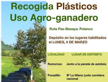 Se procederá a realizar la RECOGIDA DE LOS PLÁSTICOS DE USOS AGRO-GANADEROS en los núcleos del Ayuntamiento por parte de la Mancomunidad de Municipios Sostenibles de Cantabria mediante la empresa Fomento de Construcciones y Contratas para su transporte y tratamiento en la Planta de Tratamiento de Residuos de Meruelo.   DÍA DE DEPÓSITO: LUNES, 4...