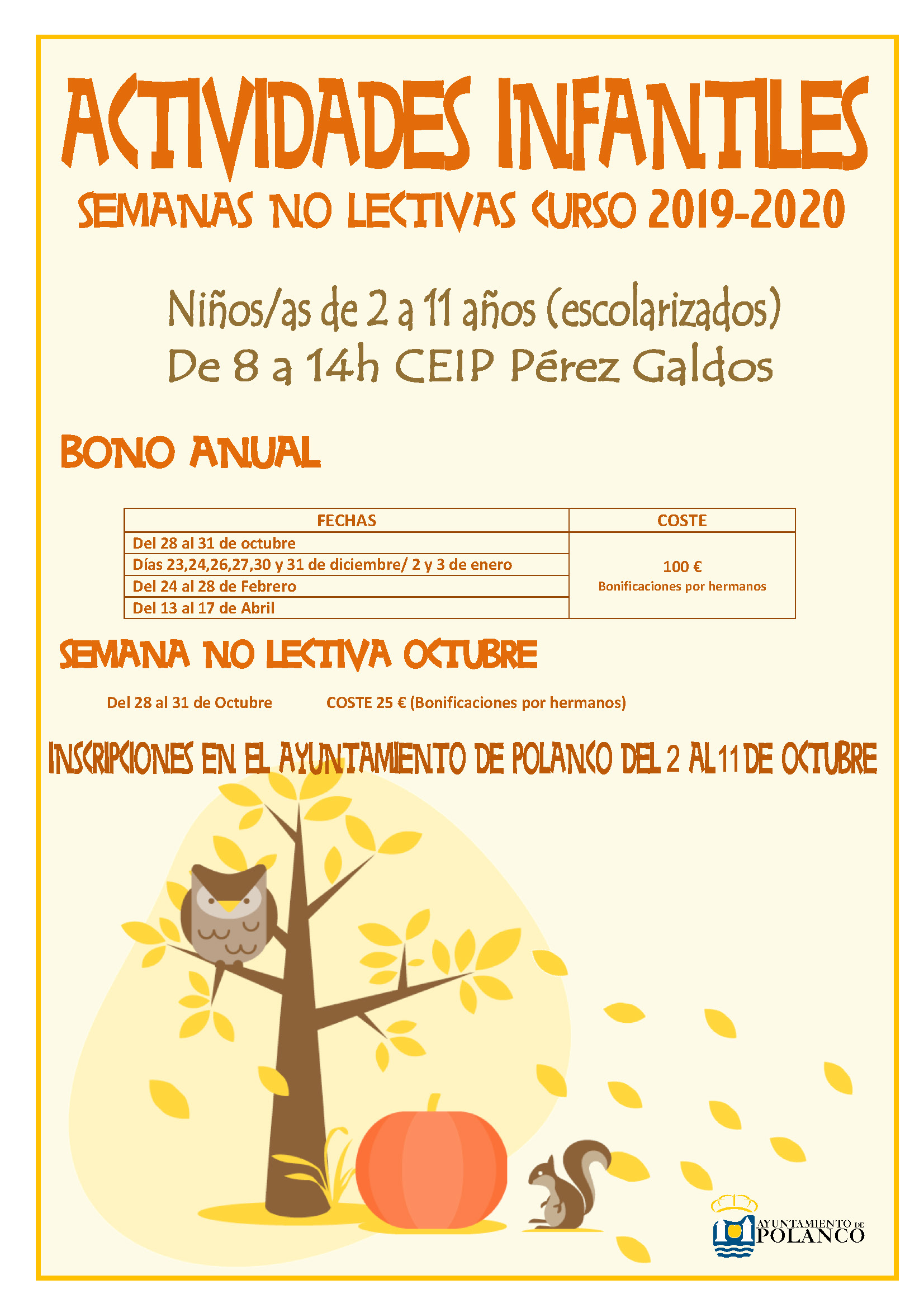 Inscripciones: En el Ayuntamiento de Polanco de 9 a 14 horas y en la Sede Electrónica acompañando el modelo de solicitud que se adjunta.