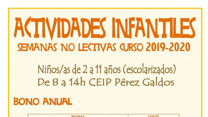 Apertura del plazo de inscripción para la actividades a desarrollar durante los periodos no lectivos del curso 2019/ 2020: