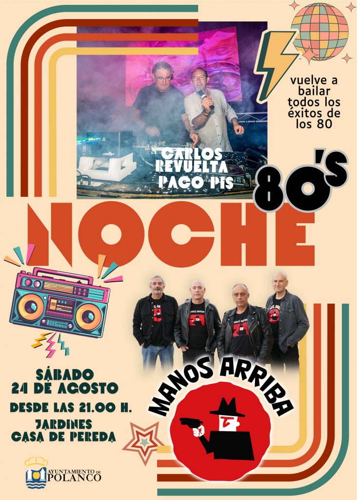 La jornada finalizará a partir de las 21.00 horas con una fiesta de los año 80 en la que habrá las actuaciones musicales de los dj Carlos Revuelta y Paco Pis, y del grupo Manos Arriba.