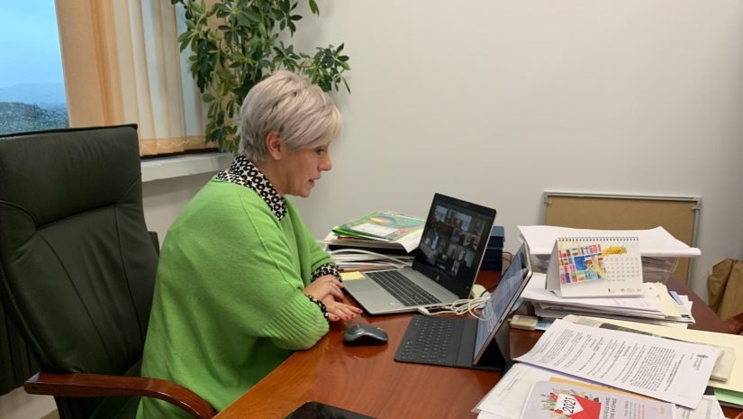 La alcaldesa presidiendo un pleno telemático de la Corporación