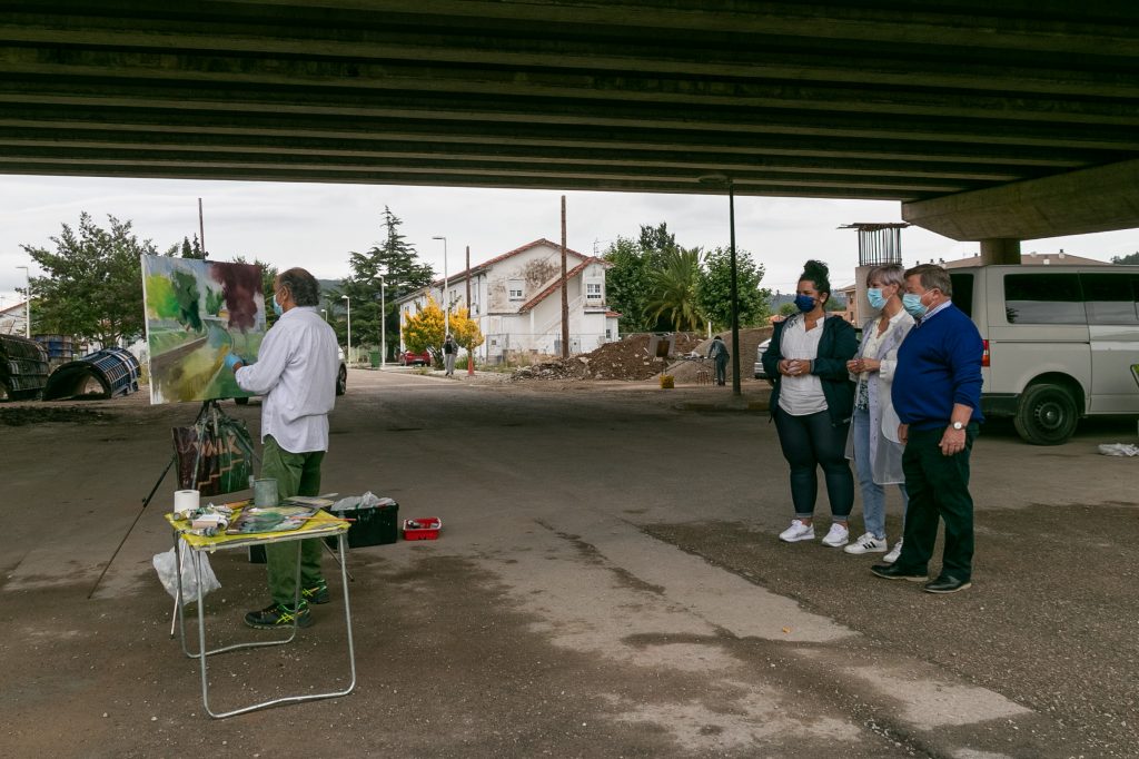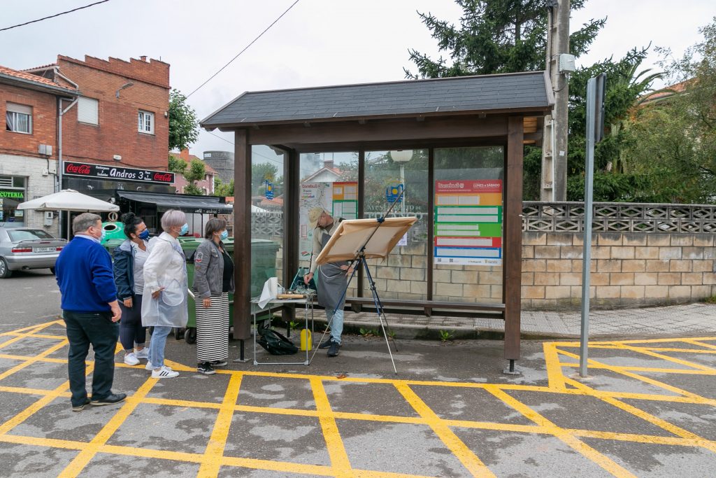 A su vez, el planquino Mario González Gutiérrez recibió un premio de 300 euros dirigido a reconocer la obra del mejor artista local participante, que presentó un cuadro en el que muestra a una persona esperando bajo la lluvia la llegada de autobús en la parada frente al centro de slud.