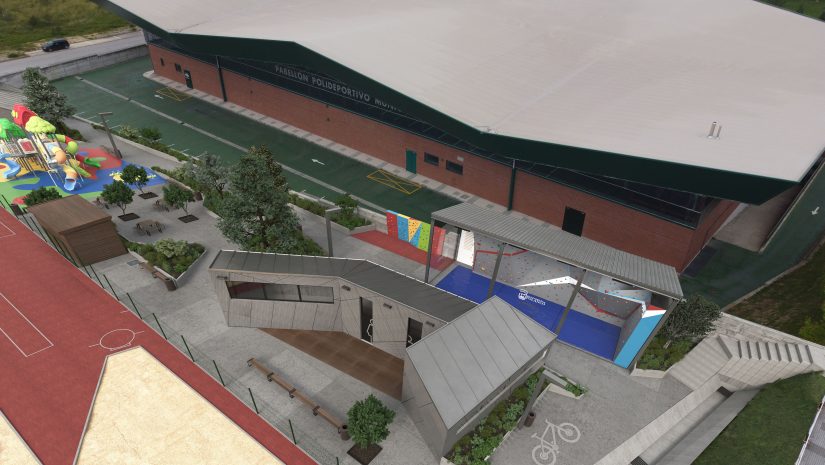 Infografía de la ampliación del área lúdica de Requejada, con el rocódromo en primer plano