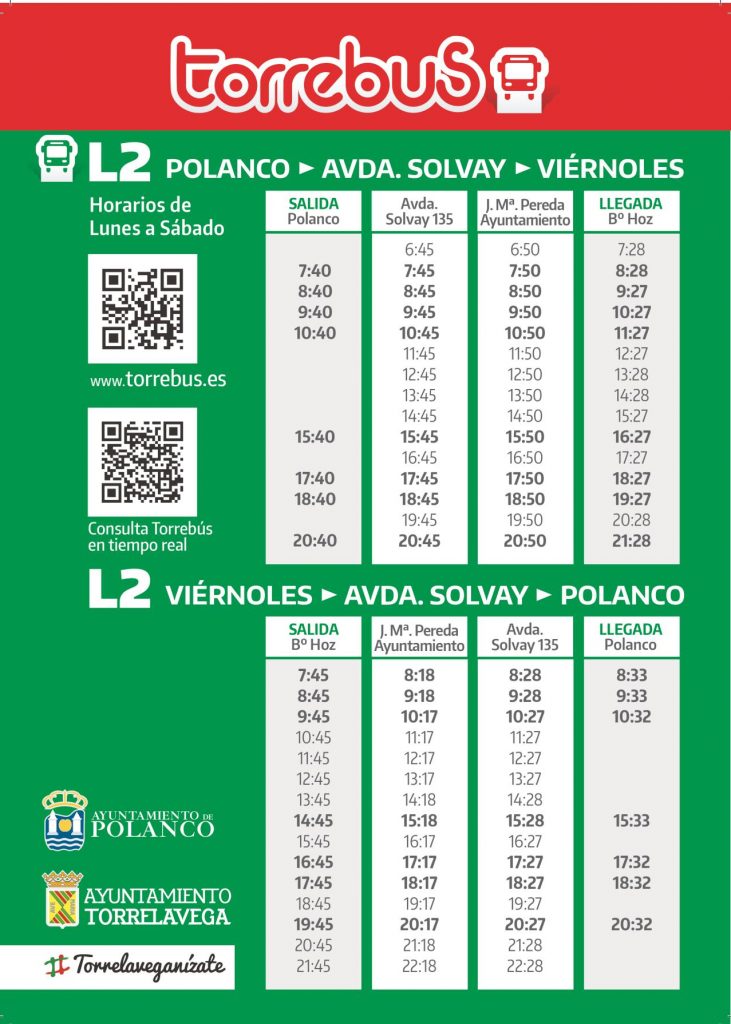 Así, el autobús cubrirá la línea de Polanco a Viérnoles a las 7.40, 8.40, 9.40, 10.40, 15.40, 17.40, 18.40 y 20.40 horas, mientras que las expediciones en sentido de Viérnoles a Polanco las hará a las 7.45, 8.45, 9.45, 14.45, 16.45, 17.45 y 19.45 horas para dar servicio a todos los usuarios.