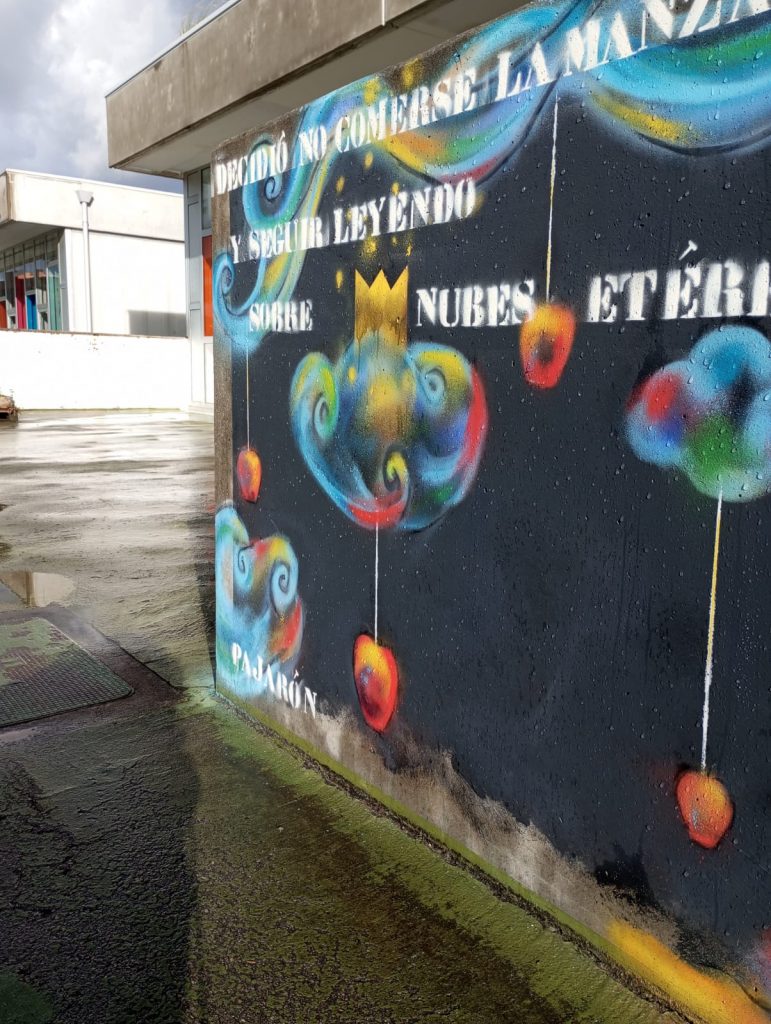 ”Cambiemos el cuento”, que fusionan pinturas realizadas los muros del centro con poesías de la propia autora para que también la palabra escrita recuerde al clásico arte en estos micro-cuentos.