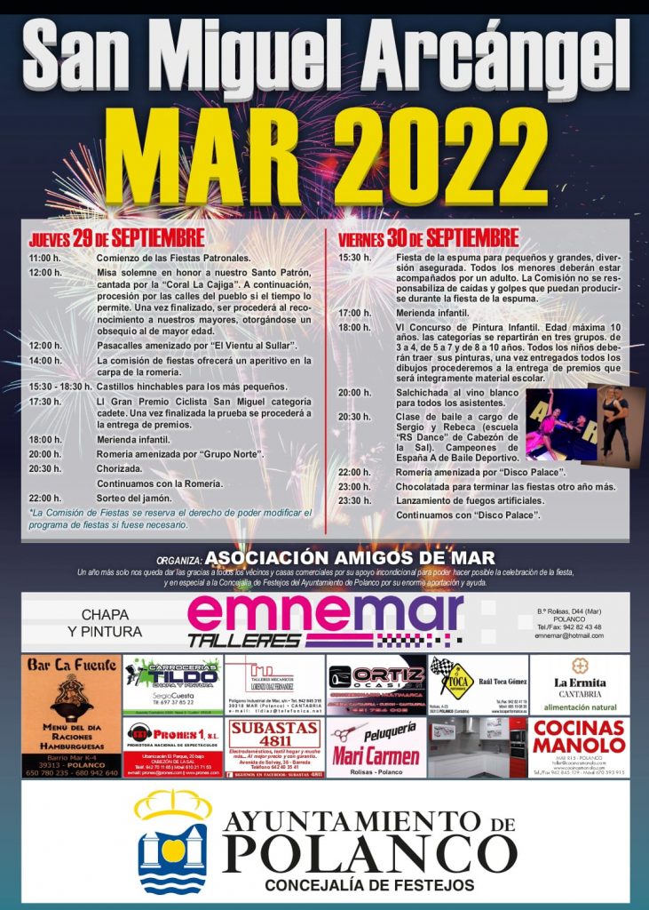 Los festejos están organizados por la Asociación de Amigos de Mar en colaboración con la Concejalía de Festejos del Ayuntamiento de Polanco, que además han conseguido sumar a diversos vecinos y casas comerciales que colaboran aportando financiación para desarrollar el programa.