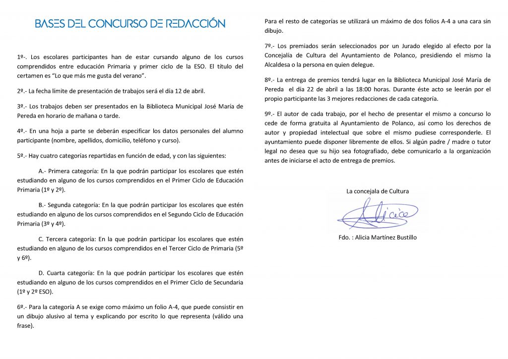 El Ayuntamiento de Polanco ha convocado un concurso de redacción entre los escolares que cursen estudios comprendidos entre educación Primaria y primer ciclo de la ESO, certamen en el que se pide a los niños que describan qué es lo que más le gustan del verano, con el objetivo de desarrollar su creatividad literaria.