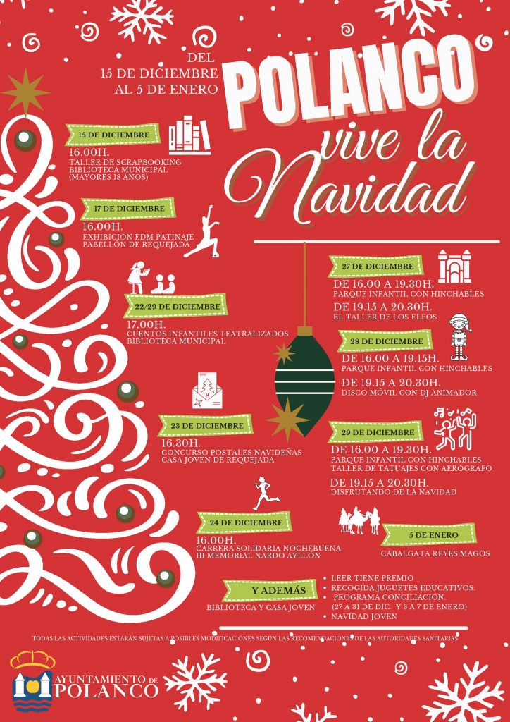 El Ayuntamiento ha organizado para las jornadas del 27, 28 y 29 de diciembre la tradicional fiesta infantil en el pabellón polideportivo de Polanco, con actividades de 16.00 a 20.30 horas, entre ellas un parque con hinchables, talleres de pintacaras y tatuajes con aerógrafo; los espectáculos «El taller de elfos» y «Disfrutando de la Navidad”, así como un animador musical.