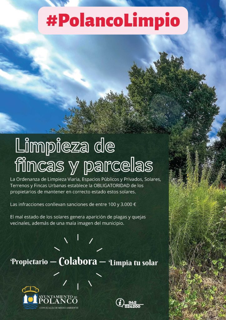 El Ayuntamiento de Polanco ha iniciado una nueva campaña informativa y de concienciación sobre la limpieza de fincas abandonadas en el municipio, con llamamientos a los propietarios para recordarles la obligatoriedad de mantener en adecuadas condiciones estos solares, a fin de evitar el mal estado de los mismos, que se produzcan incendios, la aparición de insectos y roedores, y las quejas vecinales.