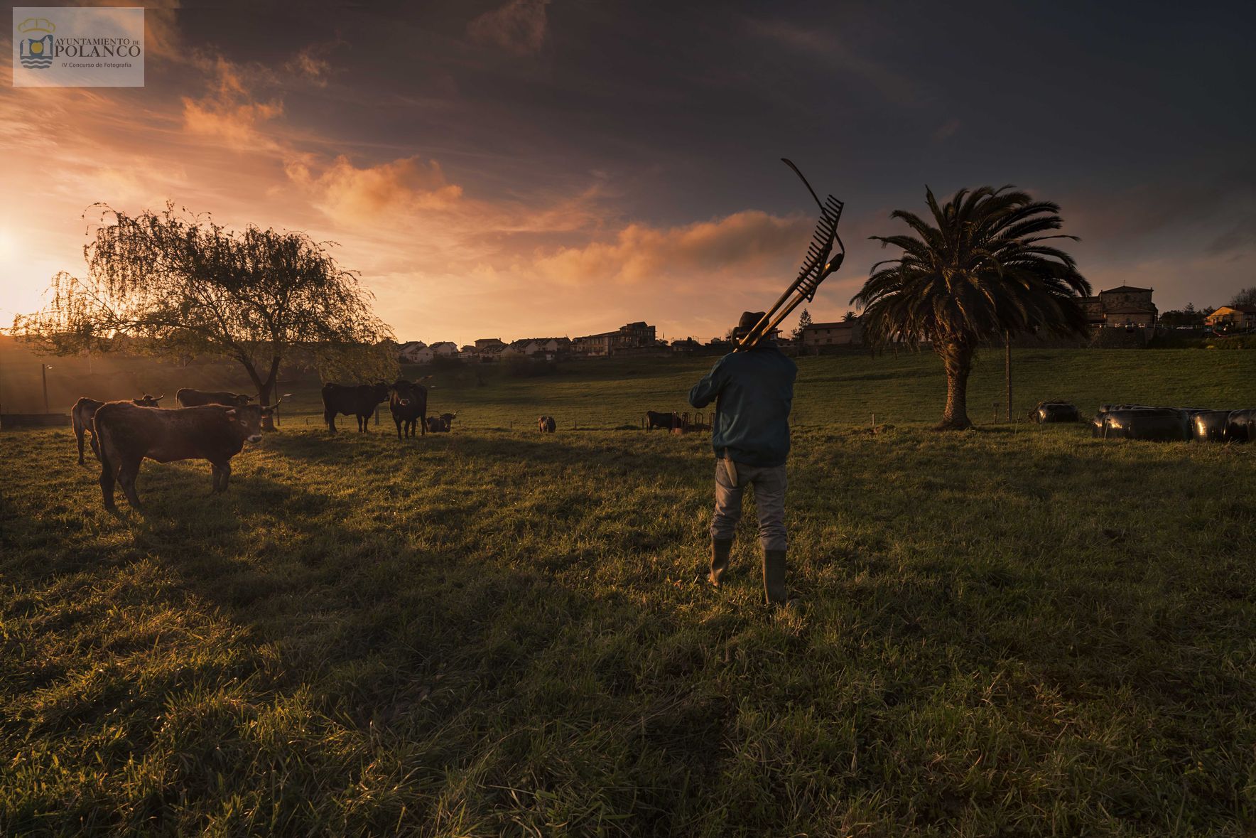 «El hombre del campo», una imagen de un polanquino regresando al atardecer de sus tareas en medio de un prado es la instantánea ganadora del IV Concurso de Fotografía sobre la vida cotidiana del municipio, a través del cual se pretende documentar aspectos como patrimonio, paisajes y escenas de la actividad diaria de los vecinos o de las fiestas.